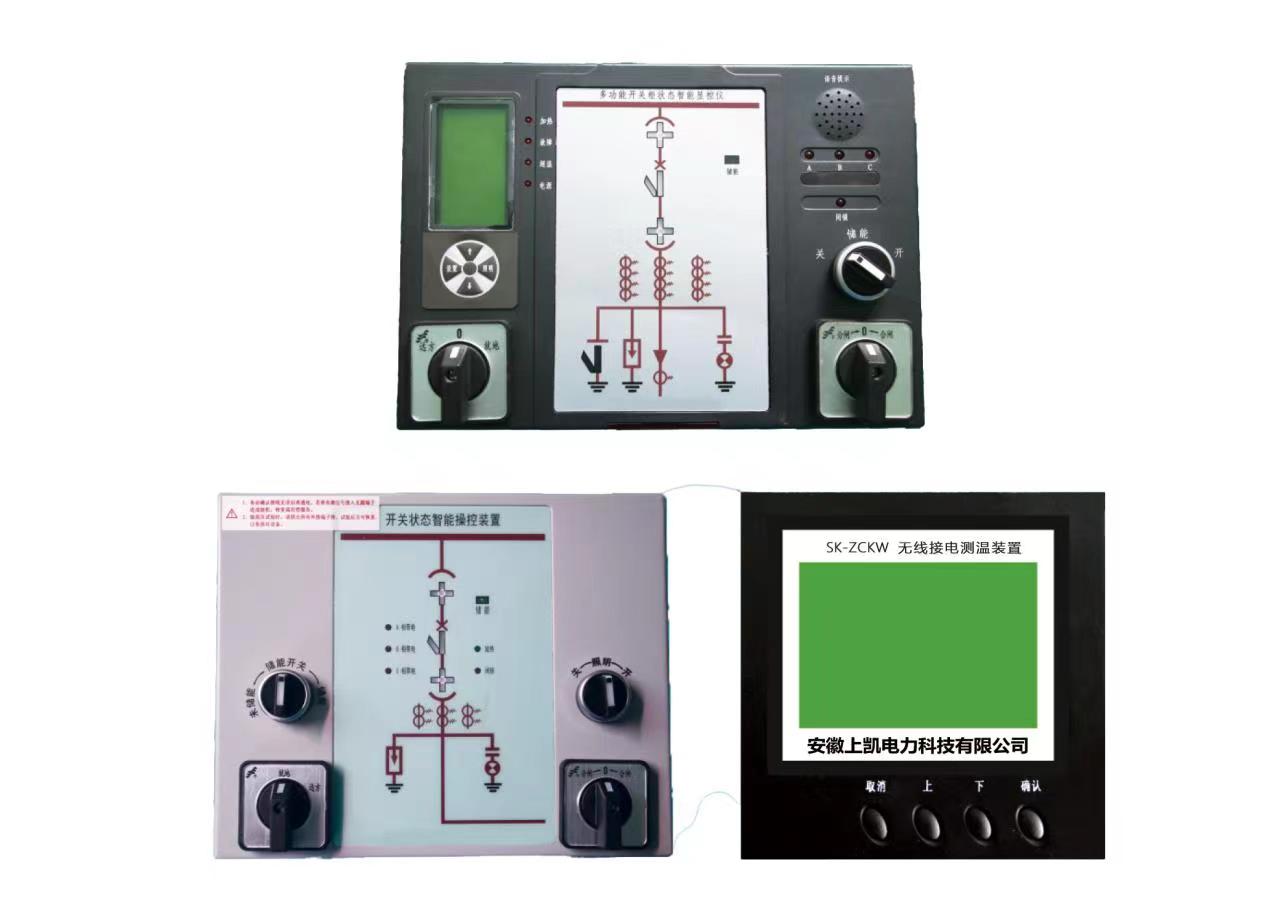 SK-ZCKW多功能开关柜状态智能操控。产品功能强大,适用于3-35kV户内开关柜、中置柜、手车柜、固定柜、环网柜等多种开关柜。具有动态一次模拟图、高压带电显示、自动加热除湿数值显示及控制、断路器分合状态指示、储能指示、接地开关状态指示、小车位置指示、分合闸回路完好指示、人体感应带电提示及柜内照明、无线测温功能、语音防误提示等功能,可取代现有的一次回路模拟图、带电显示器、自动加热除湿控制器、断路器分合按钮等。并且具有RS485通讯接口,通讯协议为MODBUS。